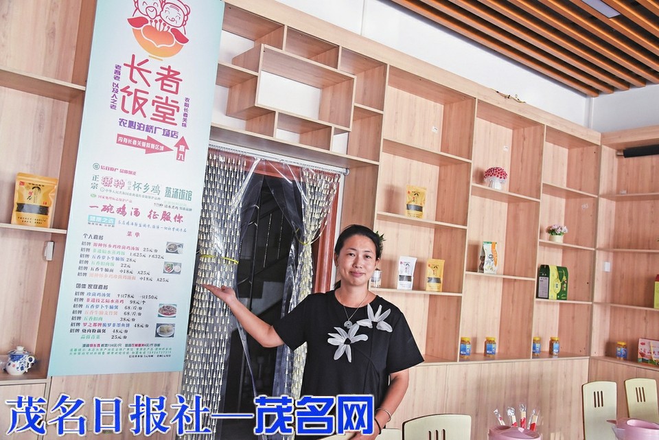 昨日,茂名晚报记者在果乡柏桥村看到,约有10间茂名商家进驻柏桥村广场,加上已有的20多间在此经营的商户,共同组成柏桥农创园。在农创园南侧,有一间“长者饭堂”,专门服务60岁以上的村中长者吃饭。饭堂约50平方米,内设凳椅,窗几明净,墙上挂着对长者的优惠标准和有关菜式,让人一目了然。店长说,长者饭堂是柏桥村为弘扬中华敬老传统美德而设的,让果乡美名和美德传播开去,发扬光大。饭堂实行自付小部分餐费和政府补贴大部分餐费相结合,90岁以上长者和60岁以上特困长者免费吃饭。其余长者自付2-7元,政府补贴3-8元不等,即可吃一顿饭。每顿饭有主食、肉类、素菜和汤,营养搭配。