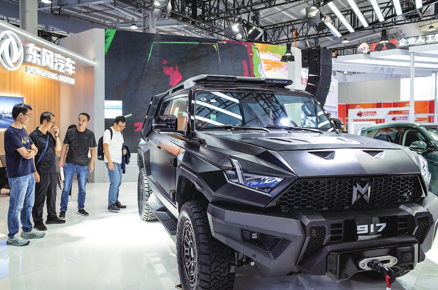9月5日,观众在服贸会首钢园区的东风汽车集团展台了解一款新能源汽车。新华社记者胡智轩摄