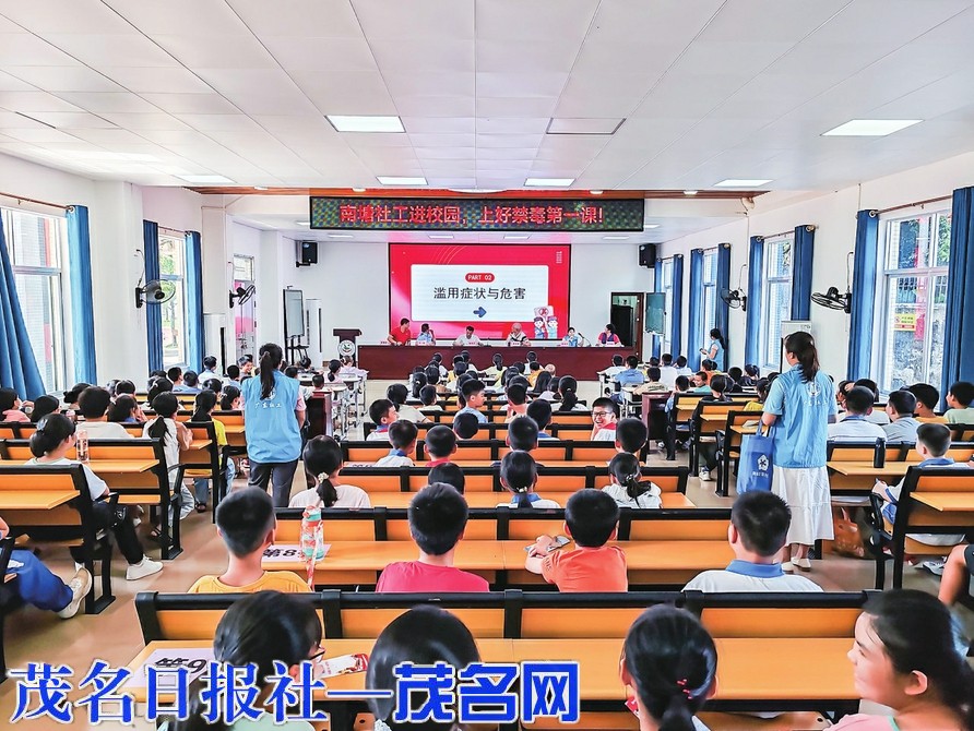 茂名晚报讯记者柯泽彪通讯员翁玲敏为进一步培养学生健康的生活情趣、毒品预防意识和社会责任感,营造浓厚校园禁毒氛围,筑牢禁毒教育防线,9月5日,高州市南塘镇社工站联合南塘镇禁毒办公室、南塘镇司法所、南塘镇派出所,到南塘中心学校举办“南塘社工进校园,上好禁毒第一课”宣传活动。