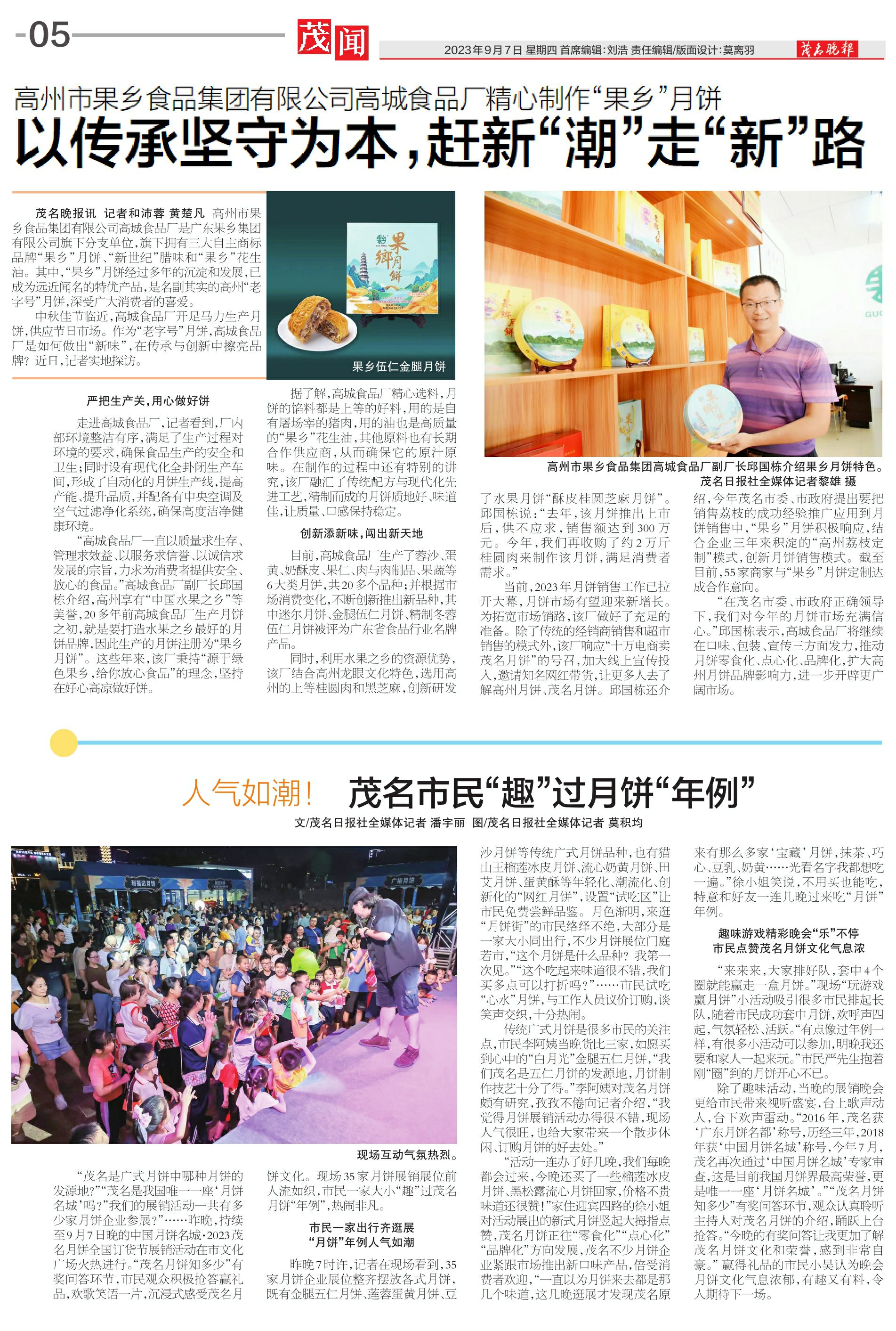 “在茂名市委、市政府正确领导下,我们对今年的月饼市场充满信心。”邱国栋表示,高城食品厂将继续在口味、包装、宣传三方面发力,推动月饼零食化、点心化、品牌化,扩大高州月饼品牌影响力,进一步开辟更广阔市场。