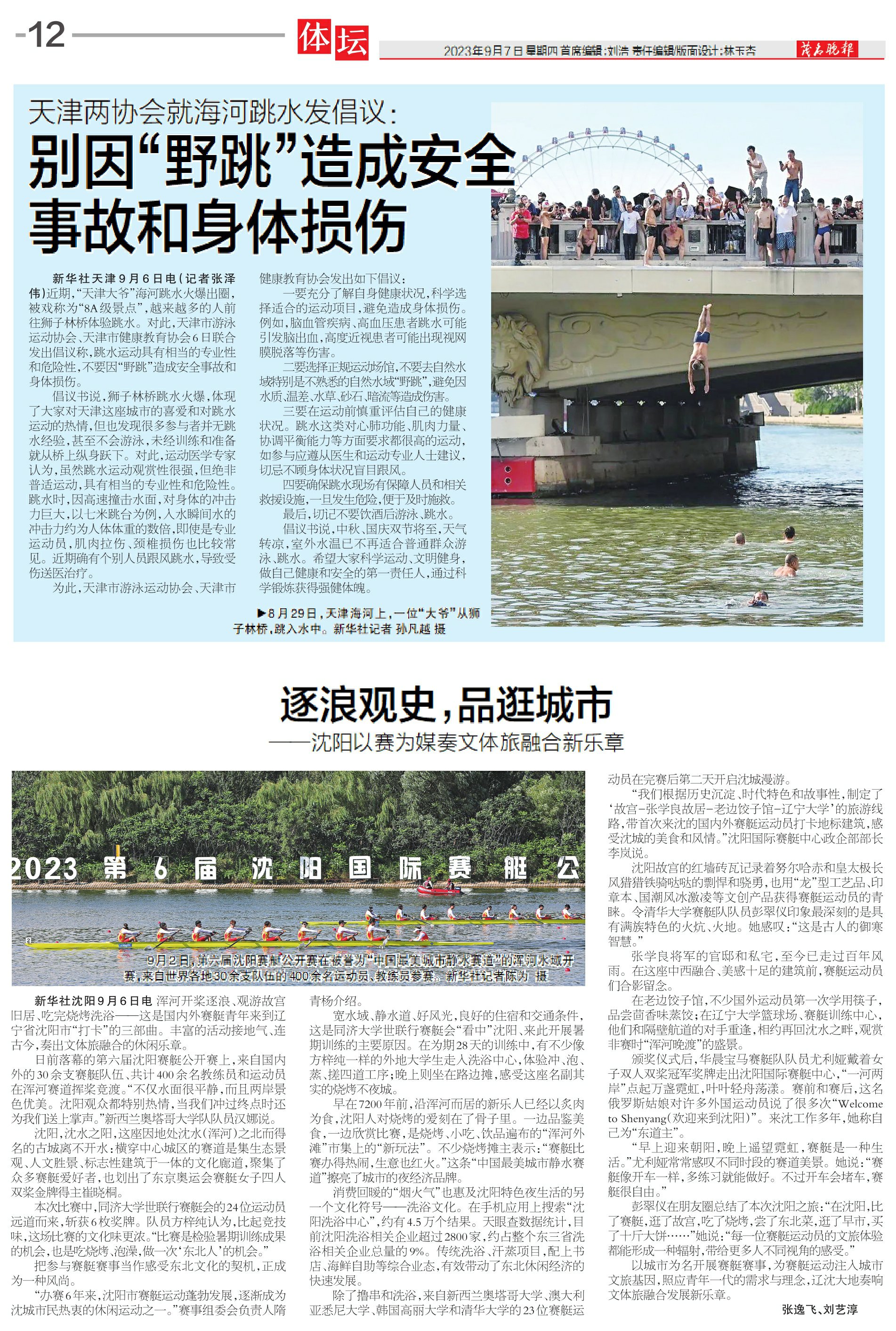 天津两协会就海河跳水发倡议:别因“野跳”造成安全事故和身体损伤