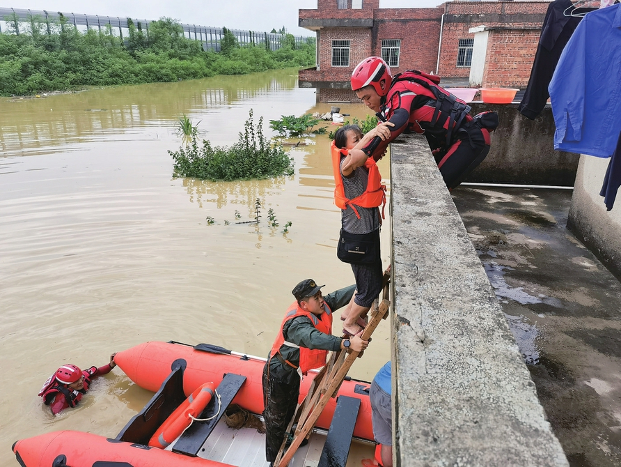 强降雨来袭武警官兵紧急救援