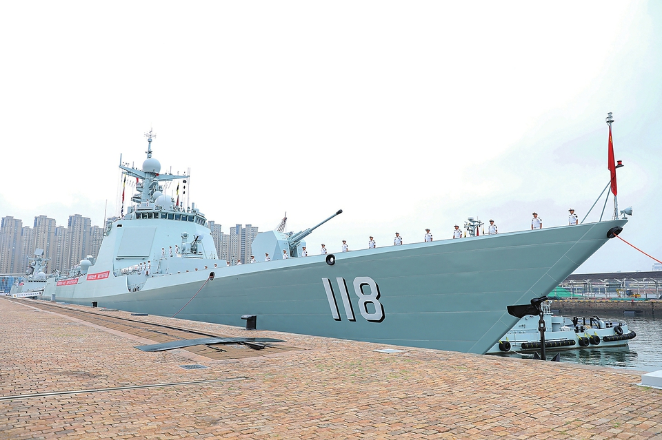 上午9时许,伴随着嘹亮的军乐声,编队舰艇驶离码头。任务官兵在甲板整齐列队,挥手向祖国和亲人告别。