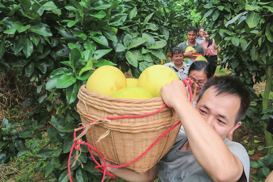 柚子丰收,果农开心。茂名晚报通讯员王庆珍摄