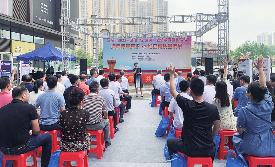茂名晚报讯记者何康源通讯员黄刘璐近日,茂名市市场监管局在东汇城购物广场举办2023年全国“质量月”诚信教育宣传活动。茂名市市场监管局、茂名市消费者权益保护委员会、广东省茂名市质量计量监督检测所和相关企业等100多人参加活动。