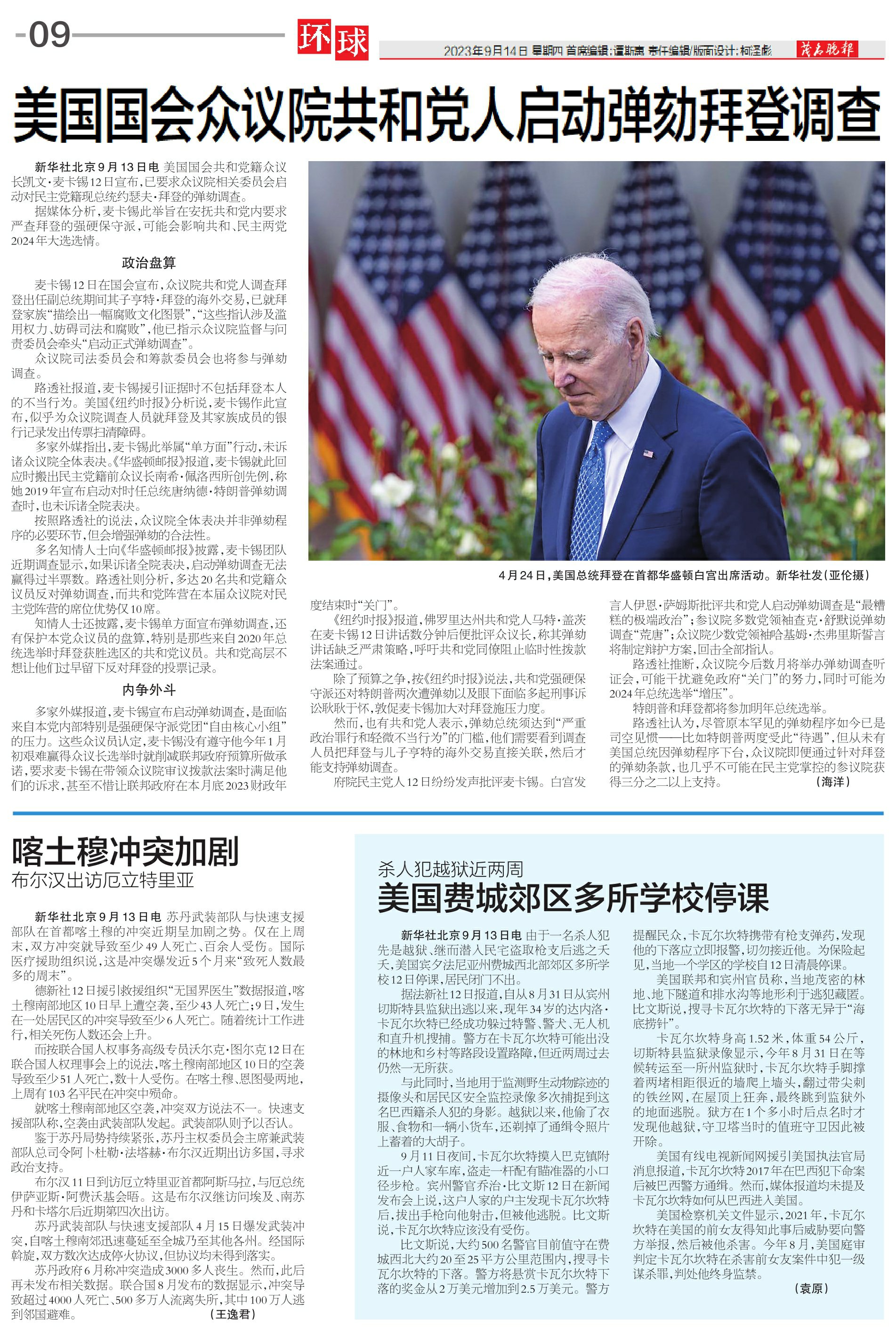 美国国会众议院共和党人启动弹劾拜登调查