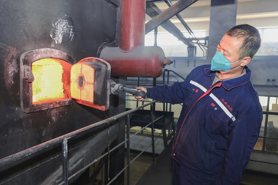 9月14日,工人在锅炉房内作业。(漠河市委宣传部供图)