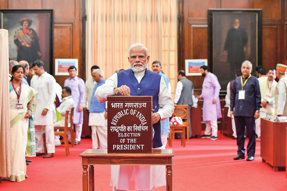 2022年7月18日,印度总理莫迪在新德里参加总统选举投票。 新华社/印联社