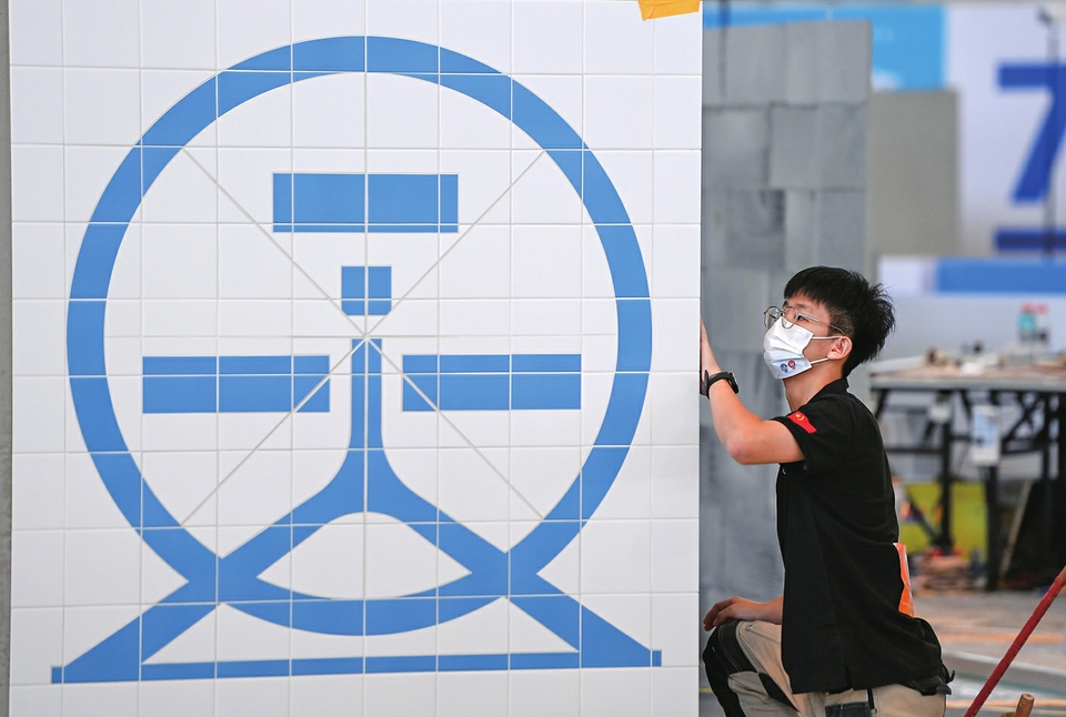 9月17日,参赛选手在参加瓷砖贴面项目比赛。新华社记者赵子硕摄