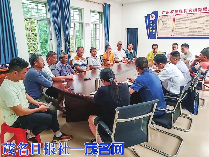 今年8月,村民将情况向大井镇政府反映。大井镇政府收到群众投诉后,该镇综治办工作人员和“平安大走访”驻村领导积极组织胜利农场和受灾村民双方进行协商。初步了解受损田地130亩、茶花2亩、鱼塘20亩,受影响的还有大量水渠和少量蕉木地。8月16日,双方在胜利农场社区部进行协商,达成了初步调解意见。但鱼塘鱼苗的赔偿问题一直协商不下。8月29日,鱼塘塘主担心问题得不到妥善解决,于是到高州市信访局反映情况。在高州市委统战部驻大井镇“平安大走访”工作组的再次努力下,双方最终于9月7日达成协议,并在工作组的见证下签订了调解协议书。