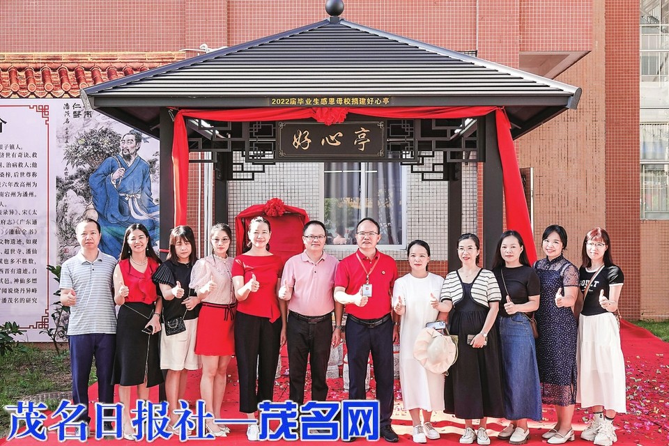愉园小学2022届毕业生捐赠的“好心亭”落成仪式现场。茂名日报社全媒体记者 梁郁文 摄