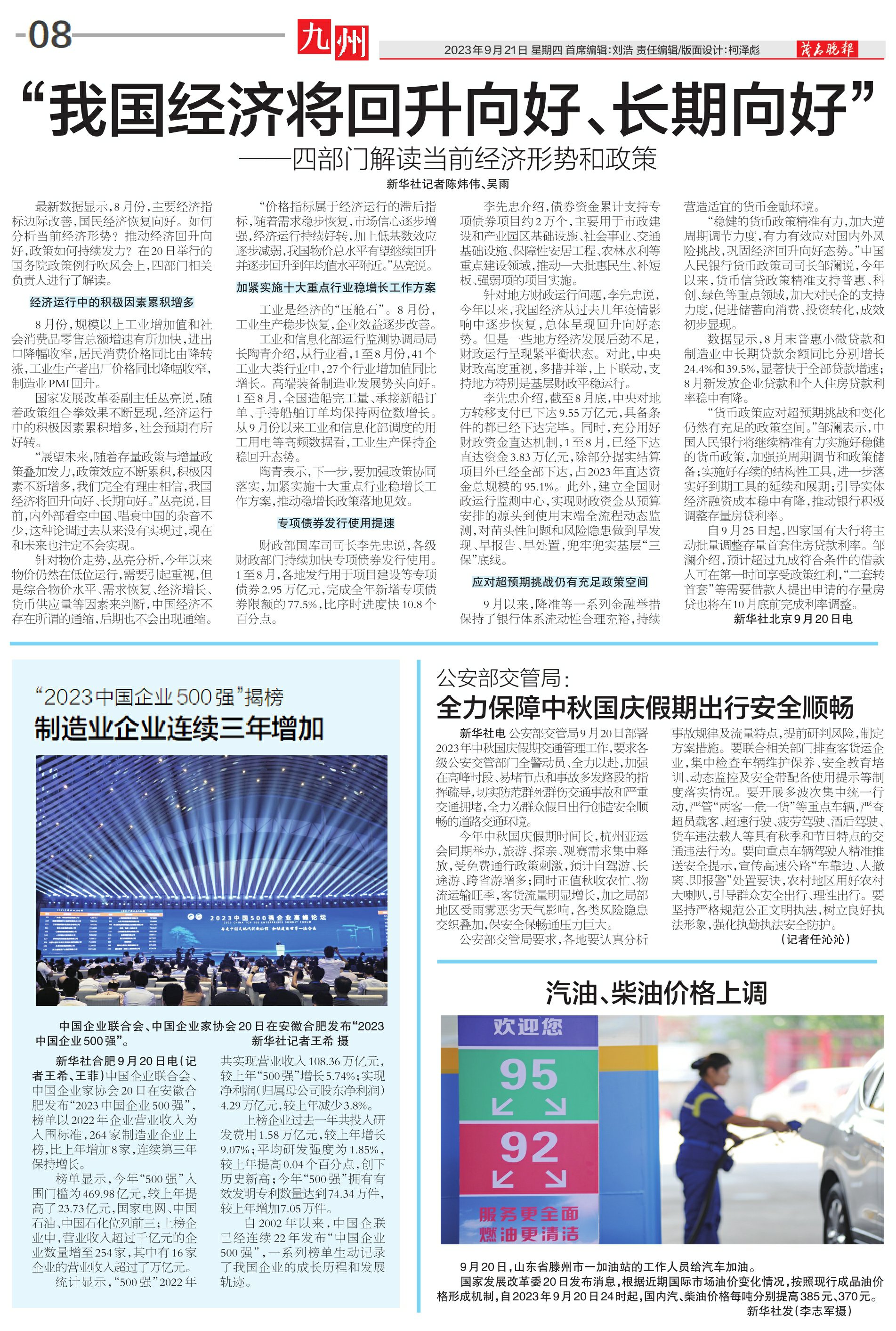 国家发展改革委20日发布消息,根据近期国际市场油价变化情况,按照现行成品油价格形成机制,自2023年9月20日24时起,国内汽、柴油价格每吨分别提高385元、370元。新华社发(李志军摄)