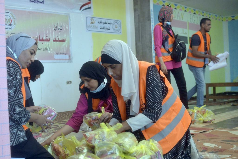 5月2日,在埃及南部阿斯旺省,工作人员为逃离苏丹进入埃及的难民准备救济包裹。新华社发(拉德万摄)