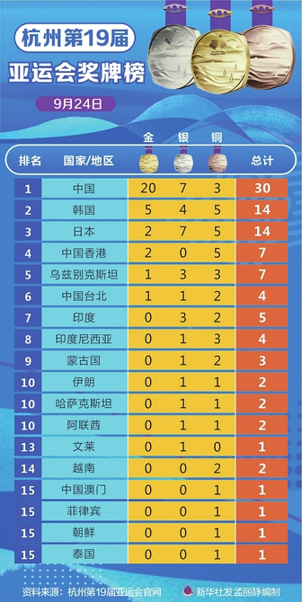 杭州第19届亚运会奖牌榜