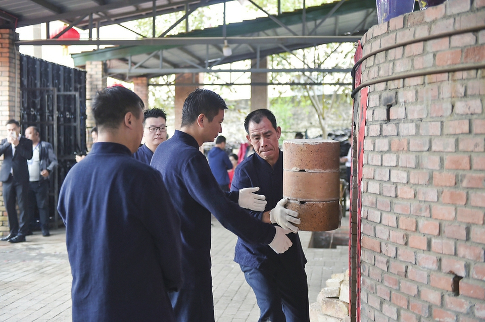 9月25日在禹州市神垕镇孔家钧瓷拍摄的开窑仪式现场。