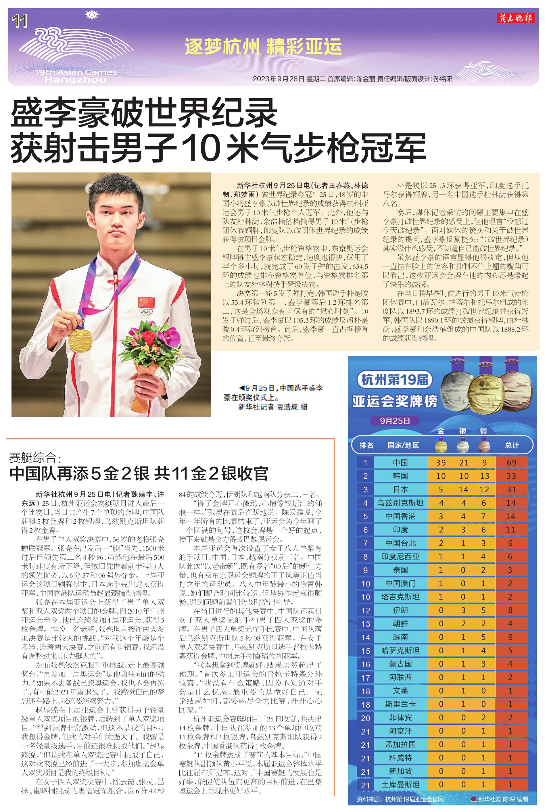 盛李豪破世界纪录 获射击男子10米气步枪冠军