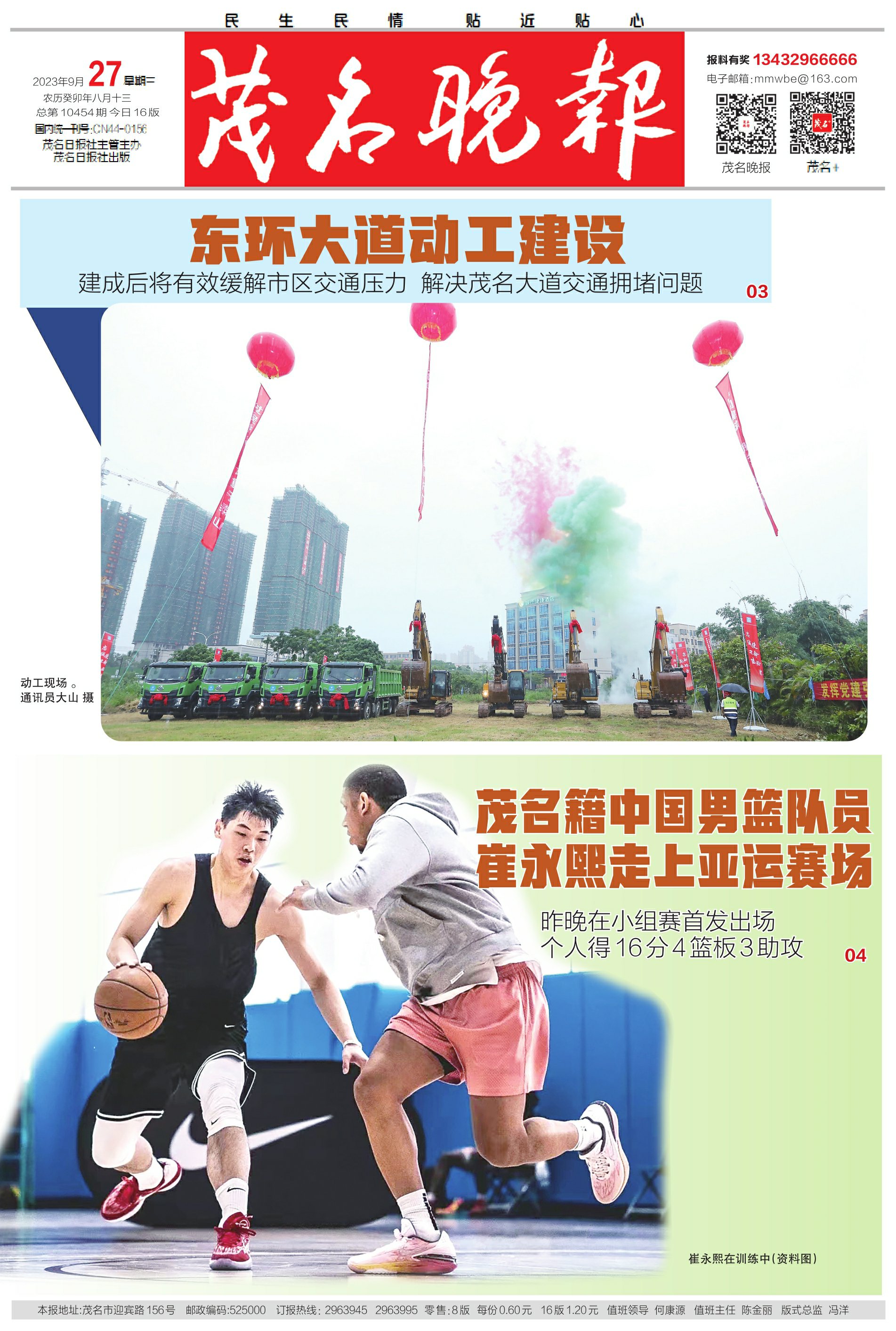 茂名籍中国男篮队员崔永熙走上亚运赛场