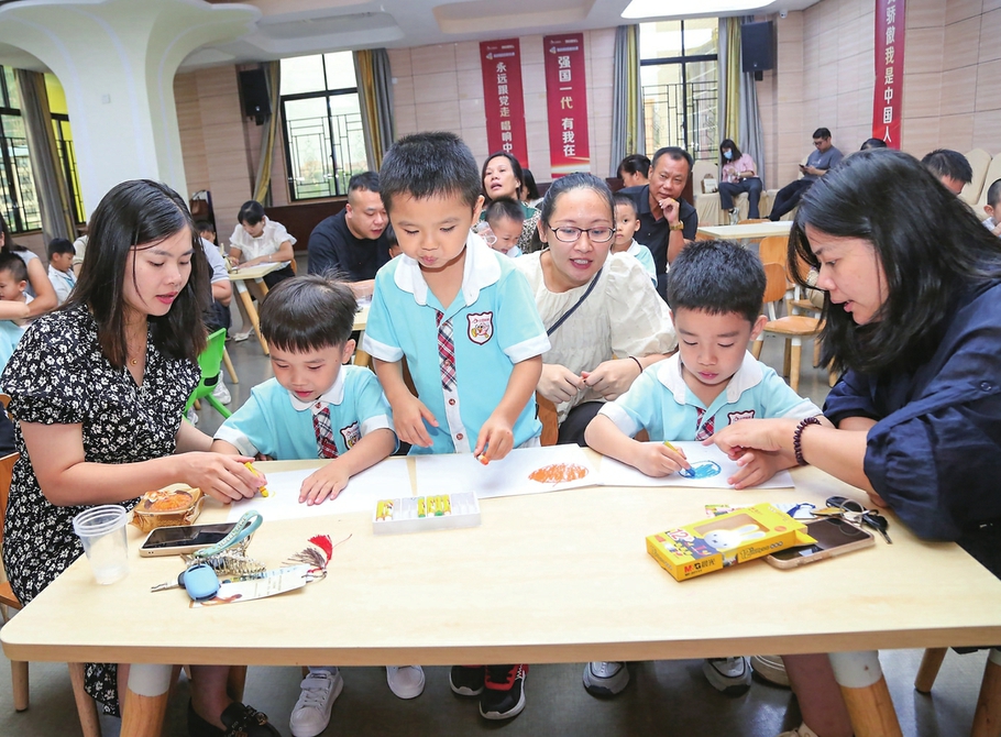 家长和孩子一起画月亮。 茂名日报社全媒体记者李颜东摄