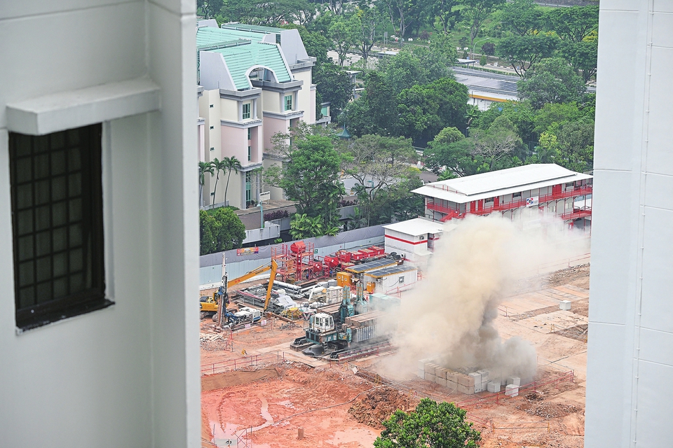 9月26日,在新加坡一处建筑工地,新加坡军方人员将一枚二战遗留炸弹引爆。 新加坡军方专家9月26日在一处建筑工地分两次引爆一枚重约100公斤的第二次世界大战期间遗留炸弹。4000多名附近居民提前疏散。 新华社发(邓智炜摄)