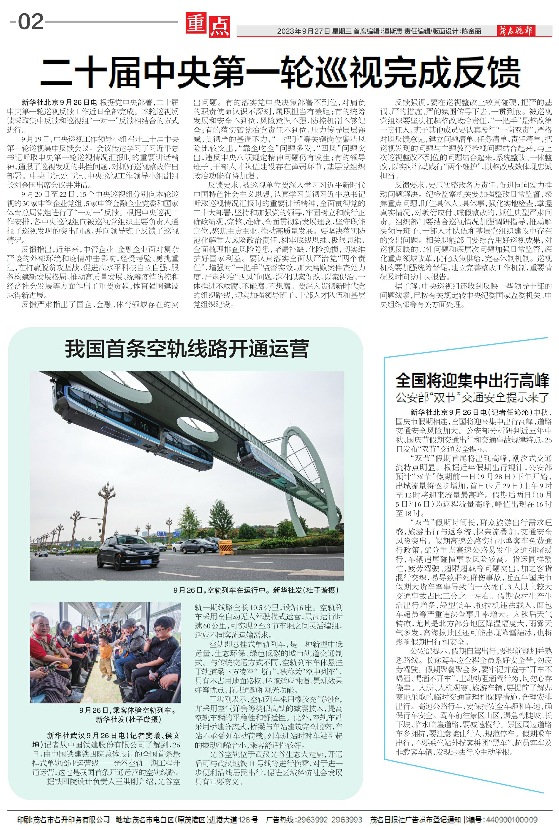 我国首条空轨线路开通运营