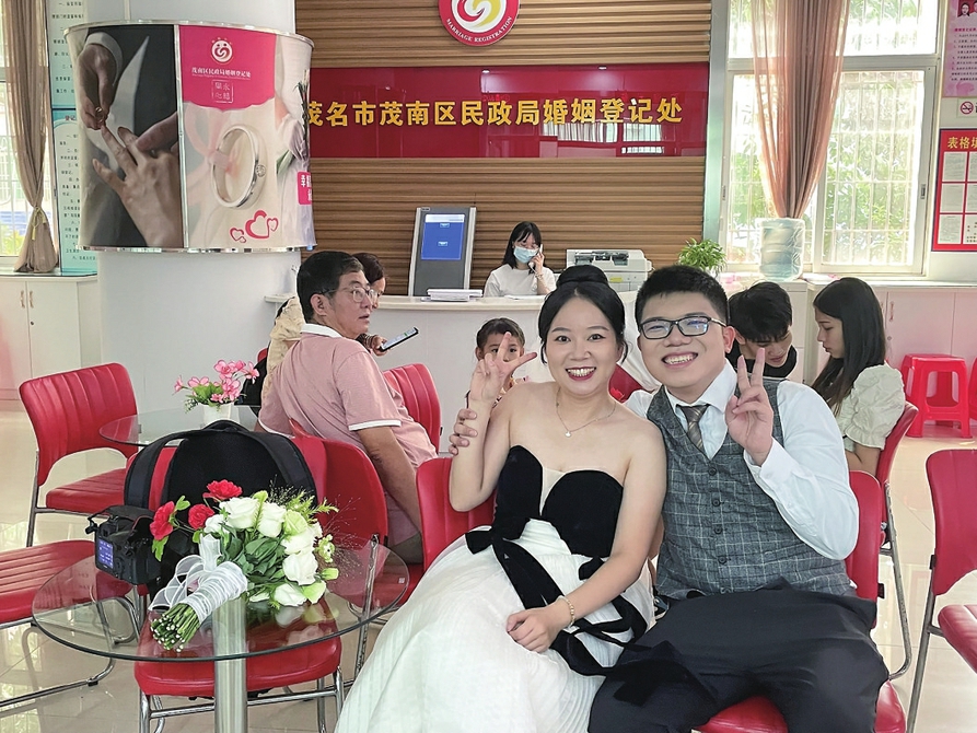 昨日,新人在茂南区婚姻登记处排队办理结婚登记手续。 茂名日报社全媒体记者李颜东摄
