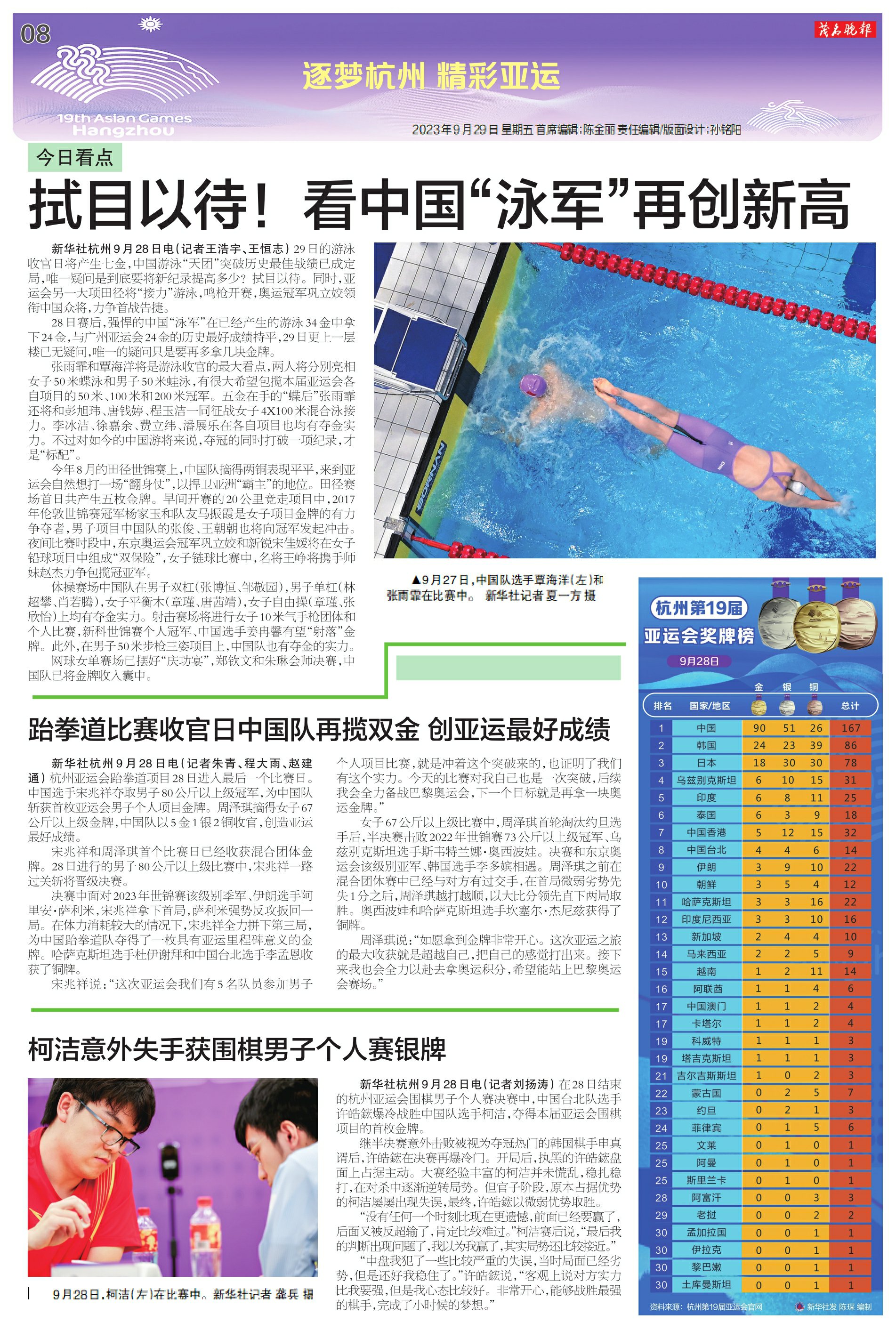 跆拳道比赛收官日中国队再揽双金 创亚运最好成绩