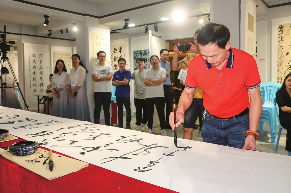挥毫疾书。 茂名日报社全媒体记者吴云杰摄