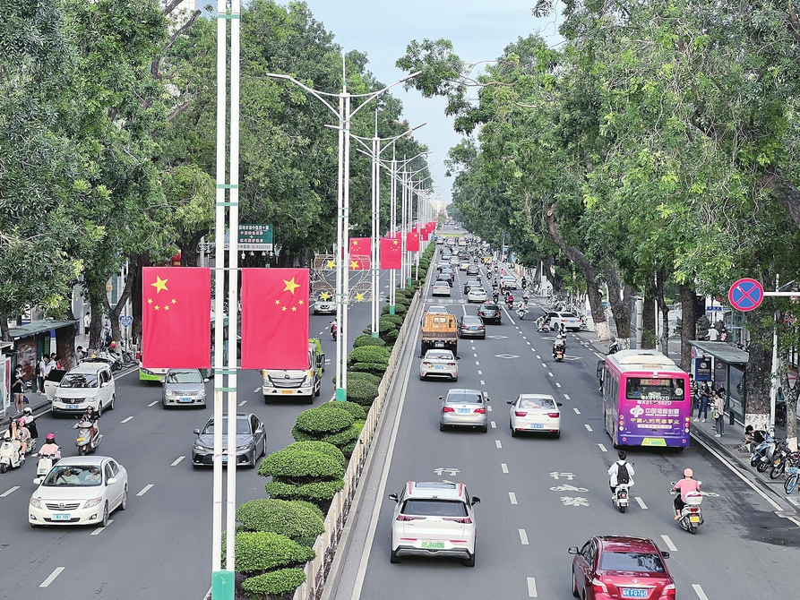 为庆祝中华人民共和国成立74周年,我市各地纷纷悬挂起五星红旗,处处洋溢着喜庆、祥和的节日氛围。