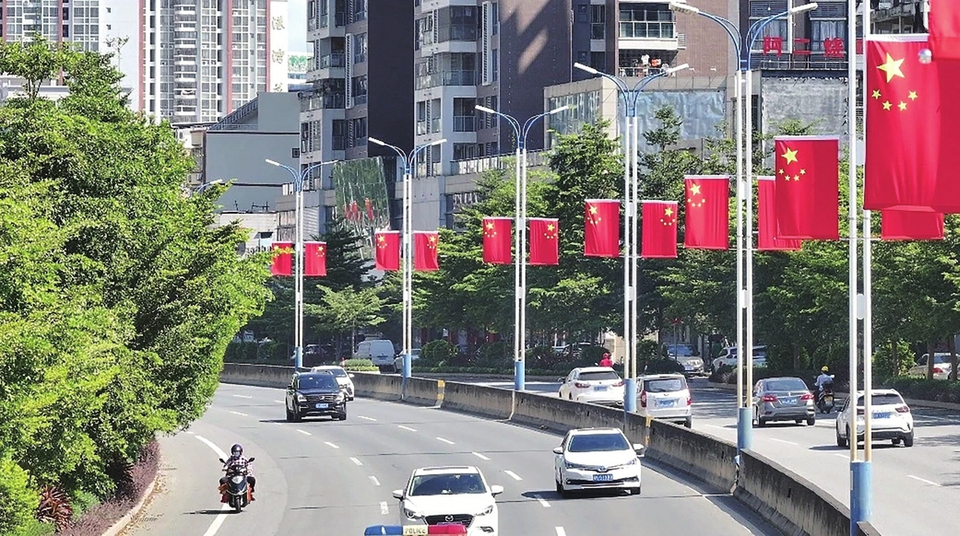 随着国庆节的到来,在信宜市信义大道、迎宾大道、书香大道、南玉大道等道路,都挂起了鲜艳的五星红旗。目光所及之处,皆是令人骄傲的中国红。置身其中,浓浓的爱国情,在每个人的心头激荡。 茂名晚报记者吴祖光 通讯员罗林 卢可欣摄