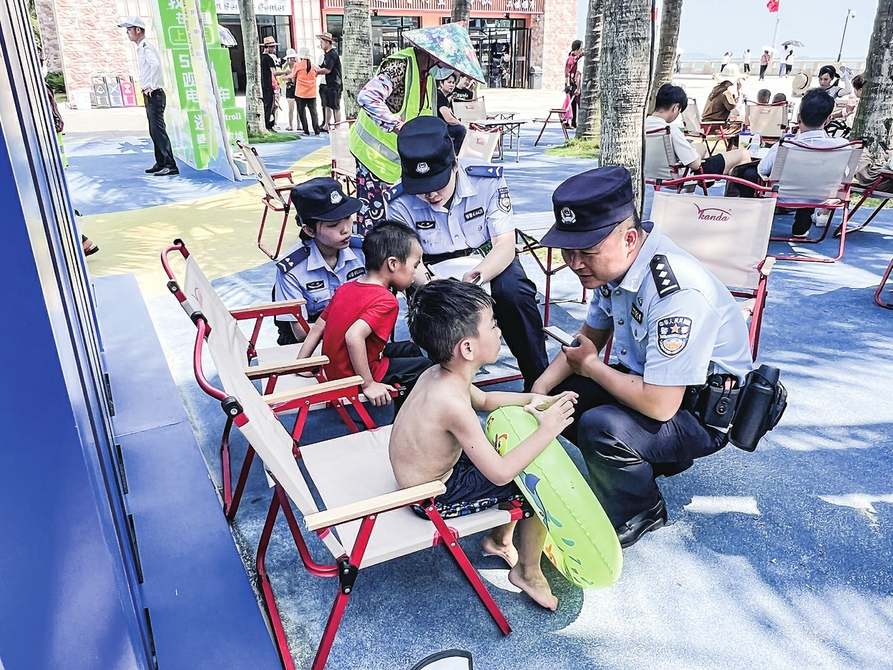 无独有偶,也是10月1日下午4时许,一对年轻夫妇急匆匆来到南海派出所救助,称自家两名小男孩在中国第一滩的滨海浴场排队洗脚时不慎走失,一名4岁,一名5岁。由于孩子年龄小,且走失的位置靠近海边,夫妇十分着急。在具体了解走失小孩的衣着和外观特征后,民警迅速联动在中国第一滩警务室执勤的警力以走失地点为中心对周边沙滩处、人行道、观光车租凭点等地方展开搜寻,同时联系景区游客服务中心的工作人员启动广播循环播报寻找信息。约30分后,在中国第一滩一处人行道附近,民警成功找到了这两名走失的小男孩,大家悬着的心也终于落地。经核实身份无误后,两名小男孩顺利回到父母身边。