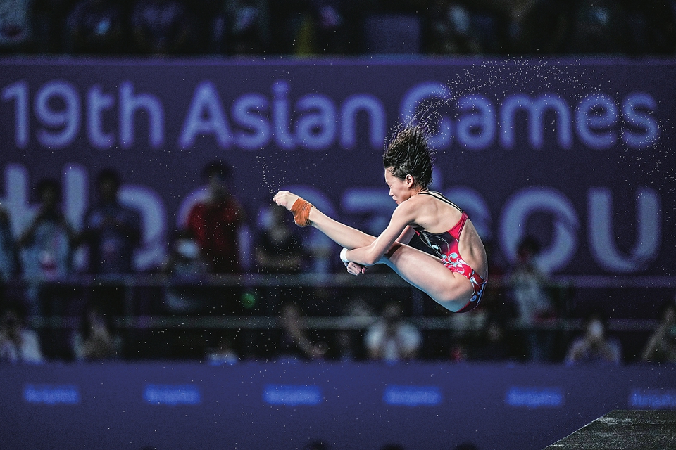 10月3日,中国选手全红婵在决赛中,她以438.20分获得冠军。新华社记者杜宇摄