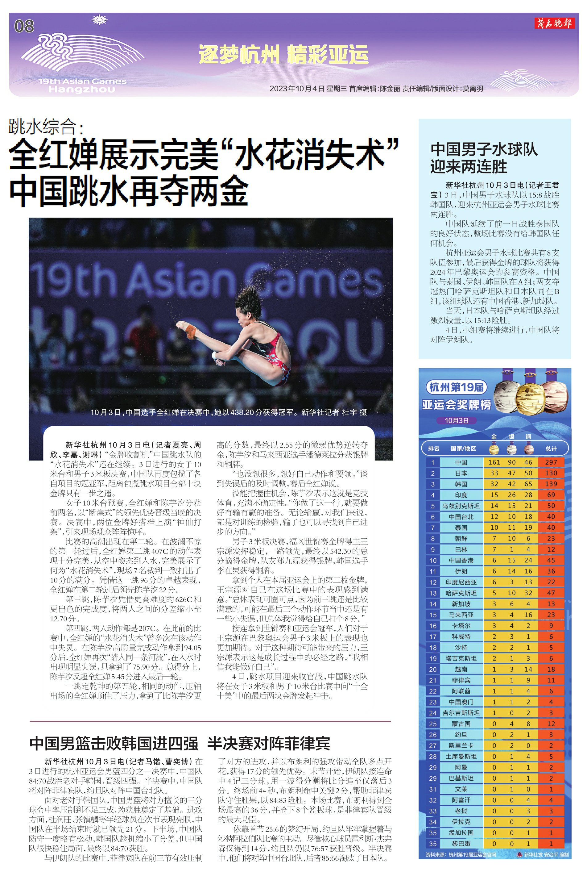 跳水综合:全红婵展示完美“水花消失术”中国跳水再夺两金