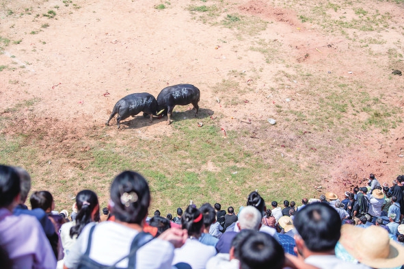 10月4日,人们在贵州省从江县下江镇观看斗牛。 新华社发(吴德军摄)