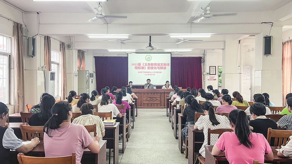 为了加强本校教师队伍建设,提升新课标背景下小学语文教师的课堂教学能力和专业素养,近日,化州市下郭街道中心小学语文科组开展了关于2022年版《义务教育语文课程标准》的变化与解读培训学习。