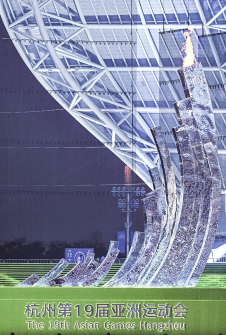 这是10月8日拍摄的亚运会主火炬。 新 华 社记者陈晔华摄