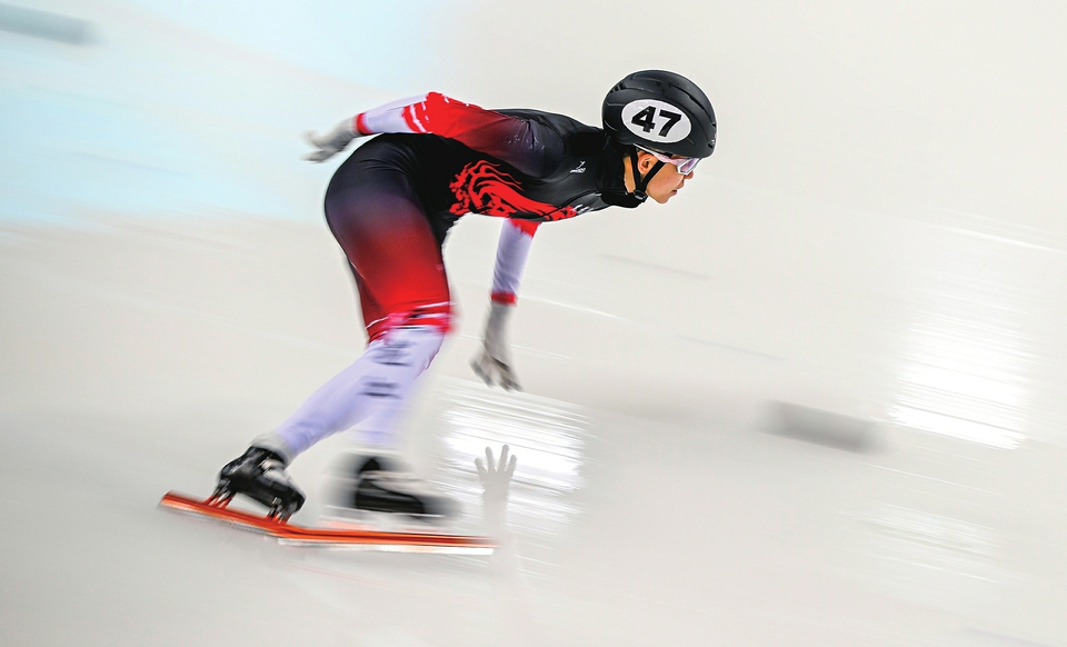 9月12日,范可新在2023-2024赛季中国杯短道速滑精英联赛(呼和浩特站)中。新华社记者连振摄