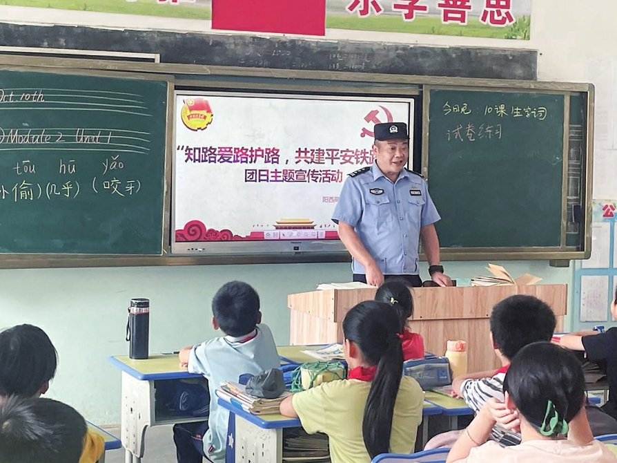 茂名晚报讯记者柯泽彪通讯员崔耀家宋晓昆为推进铁路安全生产宣传“五进”活动落实,巩固中小学校园爱路护路良好氛围,10月17日下午,电白高铁站联合茂名站派出所、肇庆工务段电白工区,结合开学季重要时间节点,深入观珠镇和平小学开展进校宣讲,合力推进安全宣传教育“进校园”工作。