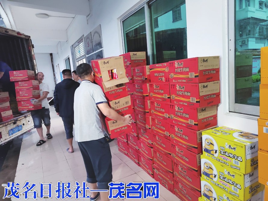 工作人员正在搬运物资。茂名晚报记者陈琴摄