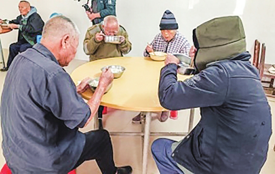 老人们一起吃饺子。
