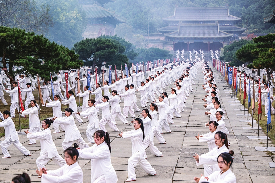 当日上午,一场兼具古朴元素和现代创意的开幕式,在世界文化遗产地武当山脚下的玉虚宫遗址举行。实景演出、传统道教音乐与交响乐、国内外视频连线、百人吟诵、千人太极等环节在青瓦红墙前精彩呈现,让线下、线上观众感受到武当太极文化的历史积淀和深远影响。