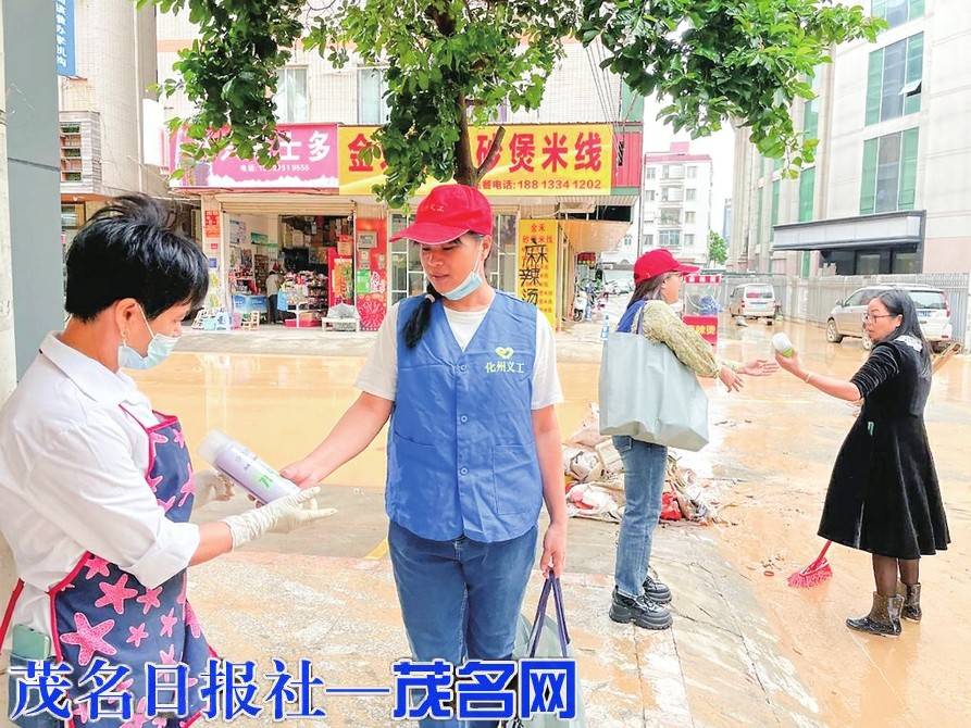化州义工免费派发消毒液助水浸区防疫