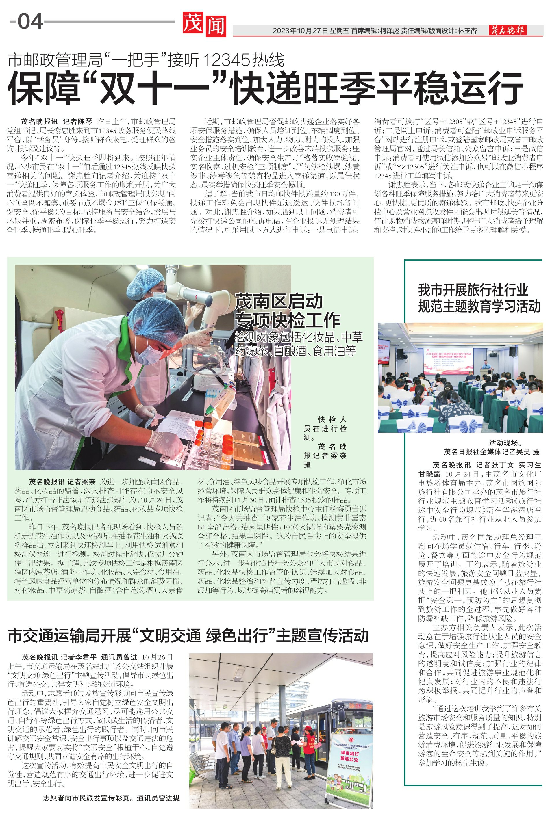 茂名晚报讯 记者陈琴 昨日上午,市邮政管理局党组书记、局长谢忠胜来到市12345政务服务便民热线平台,以“话务员”身份,接听群众来电,受理群众的咨询、投诉及建议等。