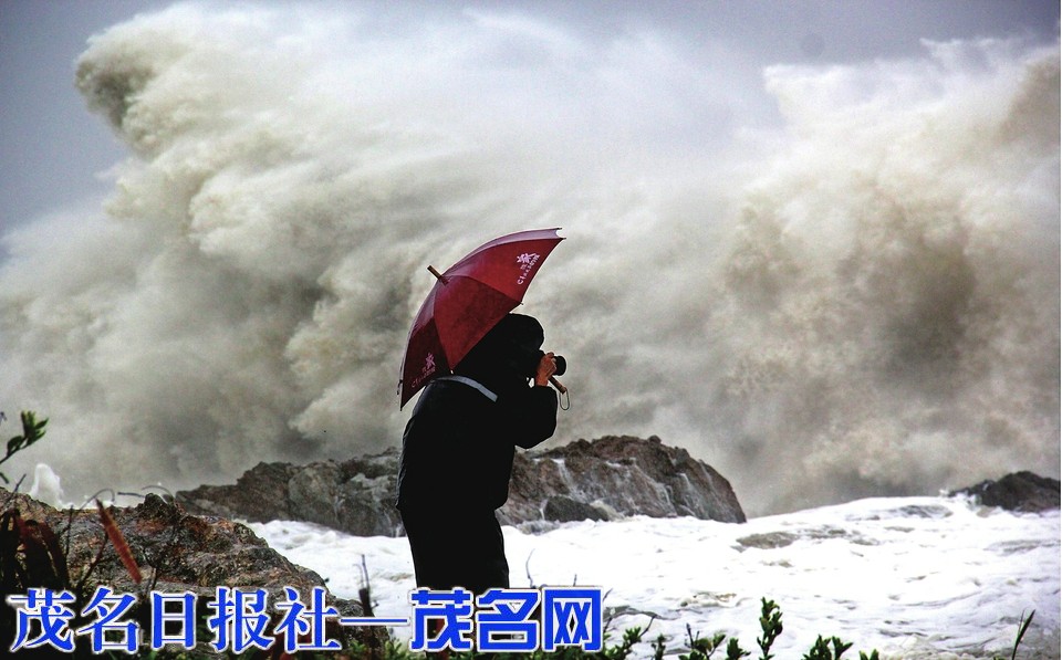 记者在海边追风追浪。茂名日报社全媒体记者岑稳摄