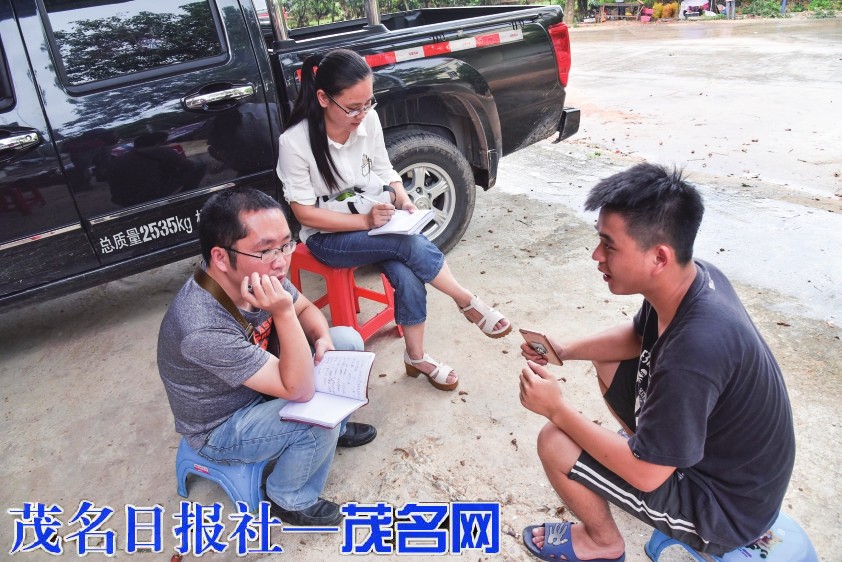茂名晚报记者何康源(左一)下乡采访。茂名日报社全媒体记者黄信涛摄