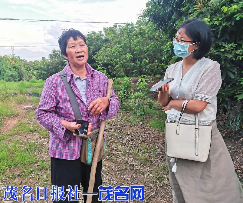 茂名晚报记者陈琴(右)下乡采访群众。茂名日报社全媒体记者岑稳摄