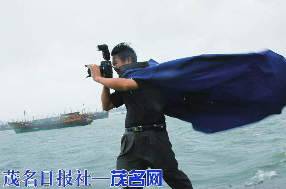 博贺渔港采访拍摄台风登陆。茂名日报社全媒体记者黄信涛摄