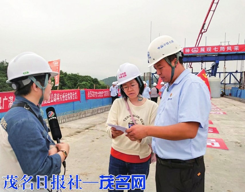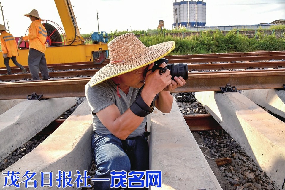 深入工地采访铁路建设。茂名日报社全媒体记者黄信涛摄