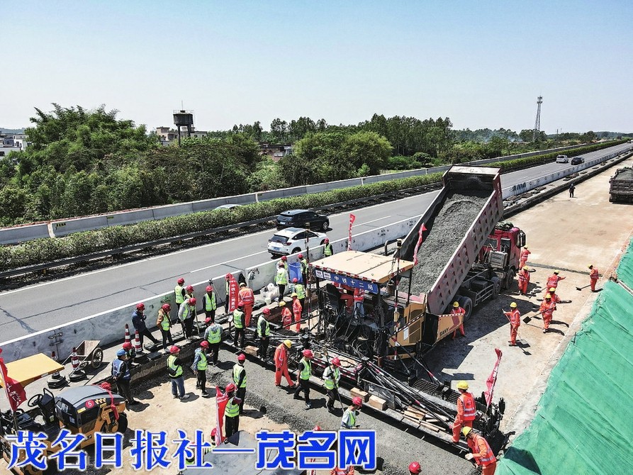 茂湛高速改扩建项目起于茂名市电白区观珠,终于湛江市麻章区高阳,全长约108.5公里,按速度120公里/小时,双向八车道高速公路标准改扩建。项目分两期建设,一期工程已建成通车,二期工程处于大规模路面施工阶段,正朝着年内通车的目标快速推进。