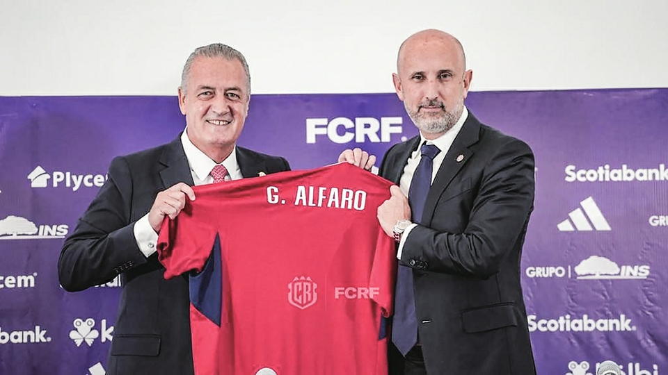 古斯塔沃·阿尔法罗(左)出任哥男足国家队主教练。图片来自哥斯达黎加足球协会官方网站