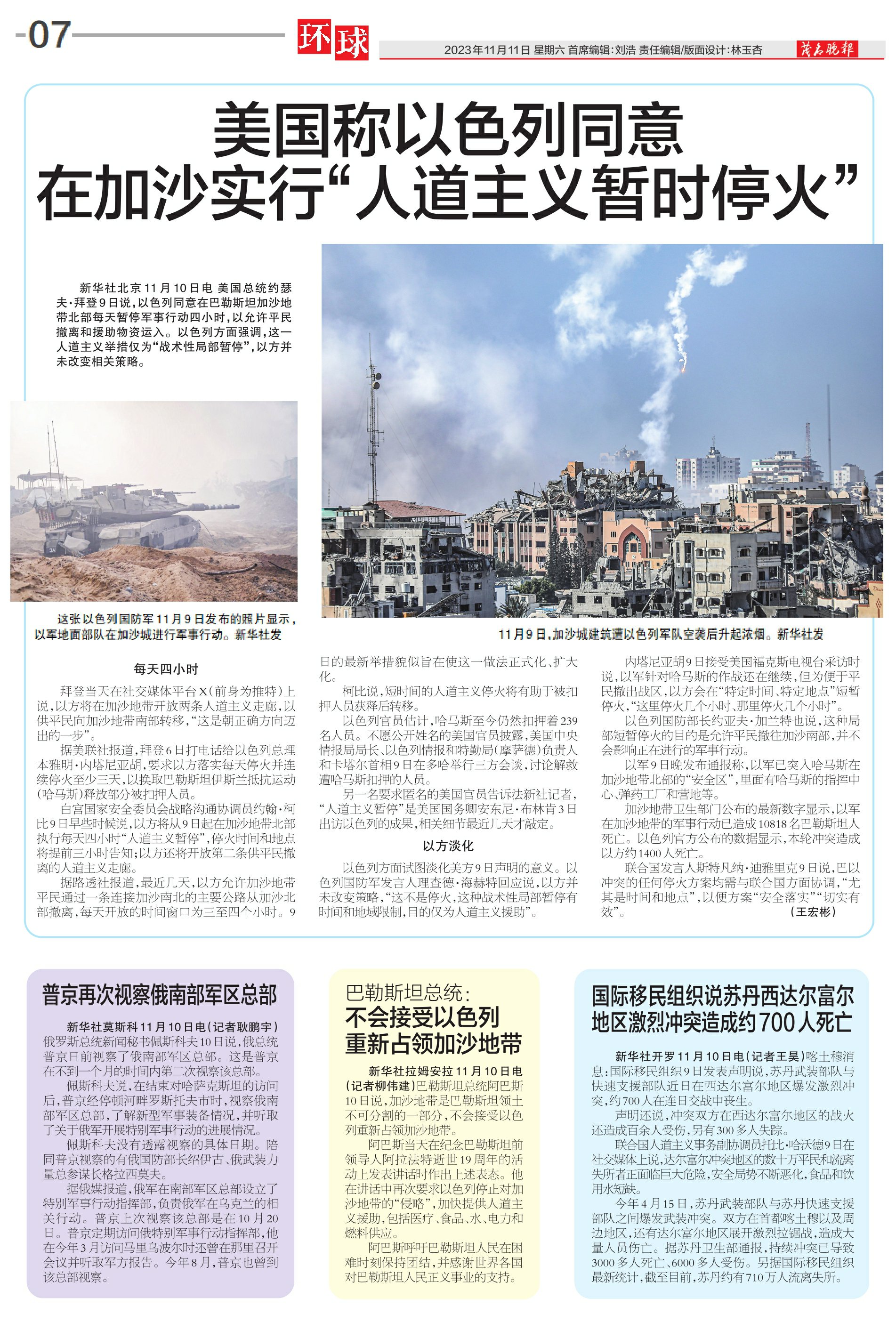 美国称以色列同意在加沙实行“人道主义暂时停火”